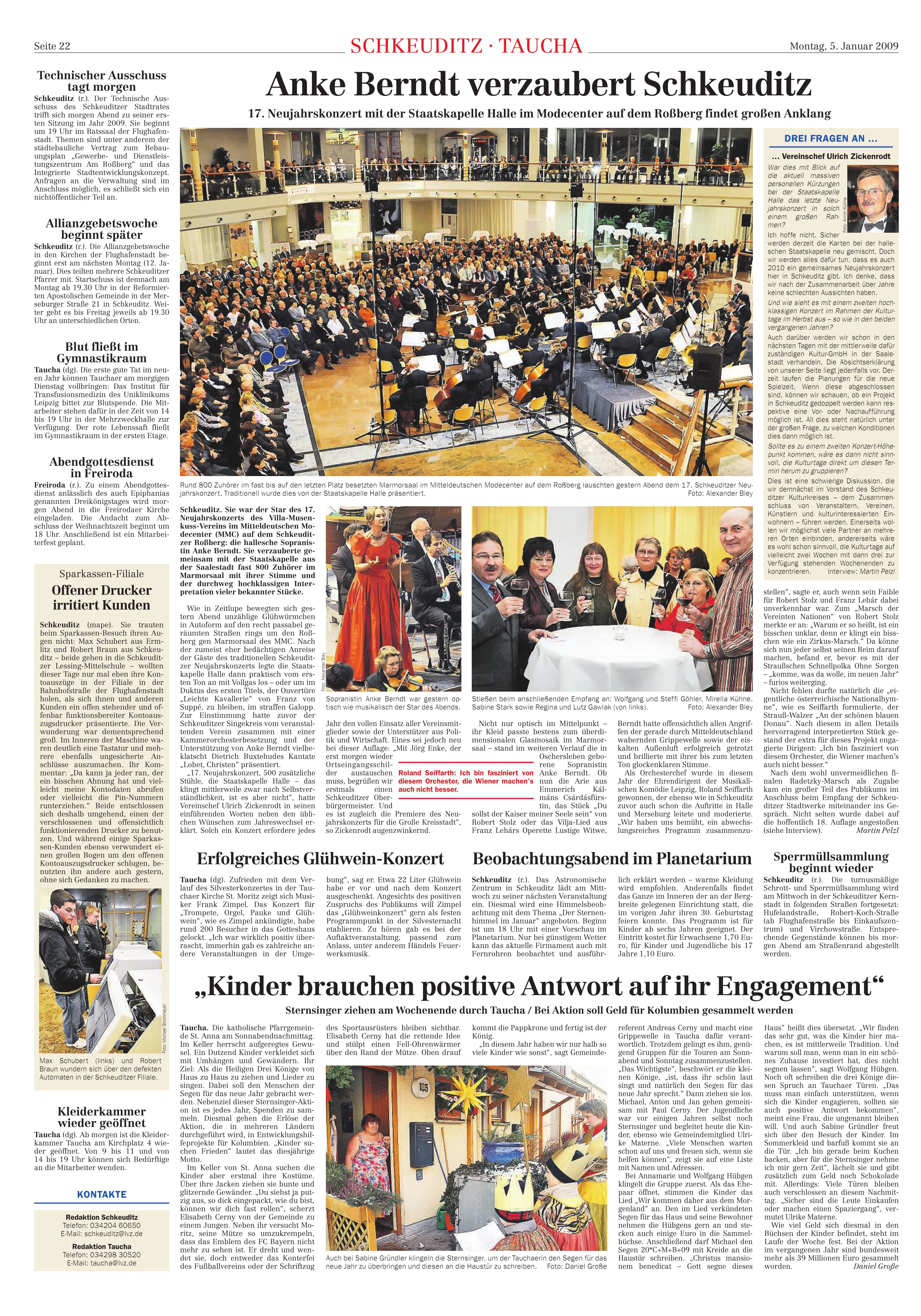 LVZ vom 05.01.2009 – Anke Berndt verzaubert Schkeuditz beim 17. Neujahrskonzert