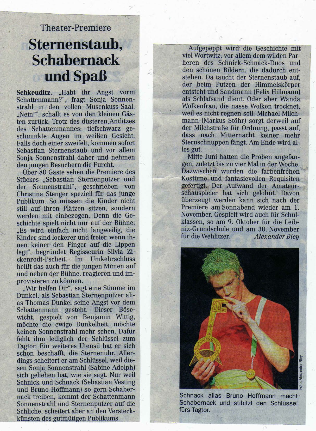 LVZ vom 28.09.2009 – „Premiere des Theaterstücks „Sebastian Sternenputzer und er Sonnenstrahl“
