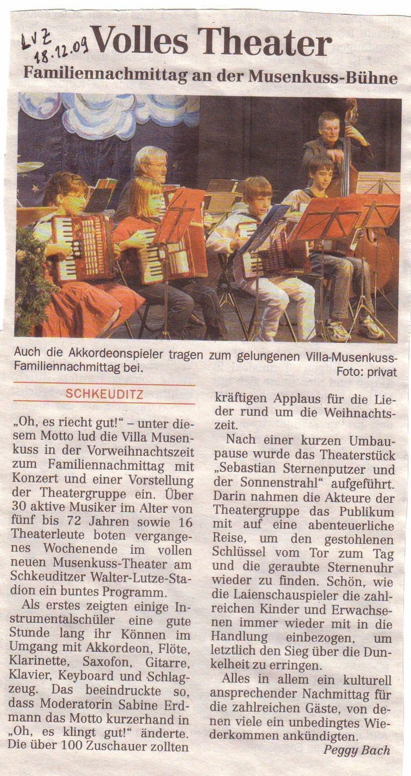 LVZ vom 18.12.2009 – Familiennachmittag – Adventsmusizieren und Theateraufführung