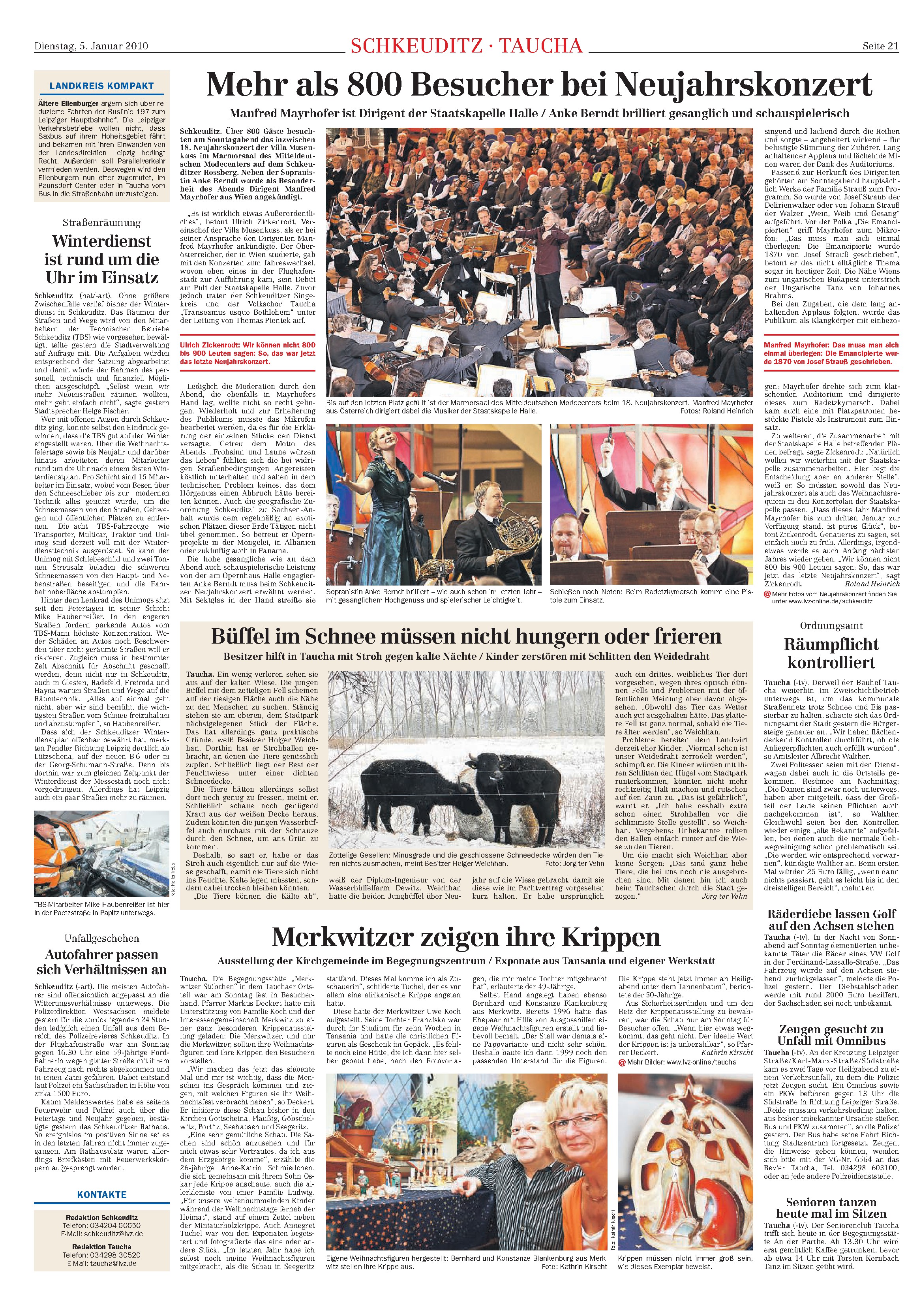 LVZ vom 05.01.2010 – 18. Neujahrskonzert im Mitteldeutschen Modezentrum auf dem Roßberg in Schkeuditz