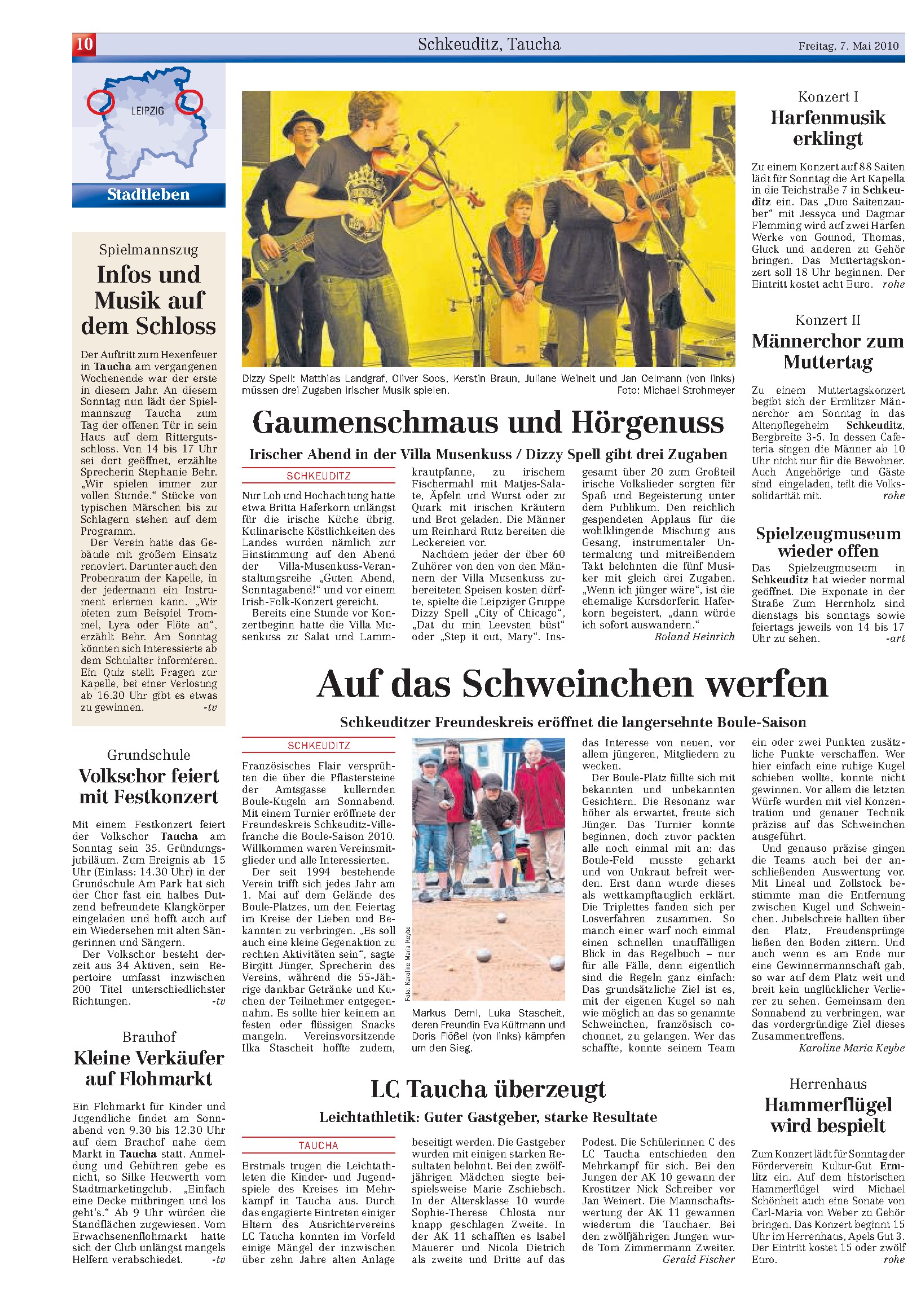 LVZ vom 07.05.2010 – Konzert der Irish-Folk-Band Dizzy Spell im Rahmen der Veranstaltungsreihe „Guten Abend, Sonntagabend“