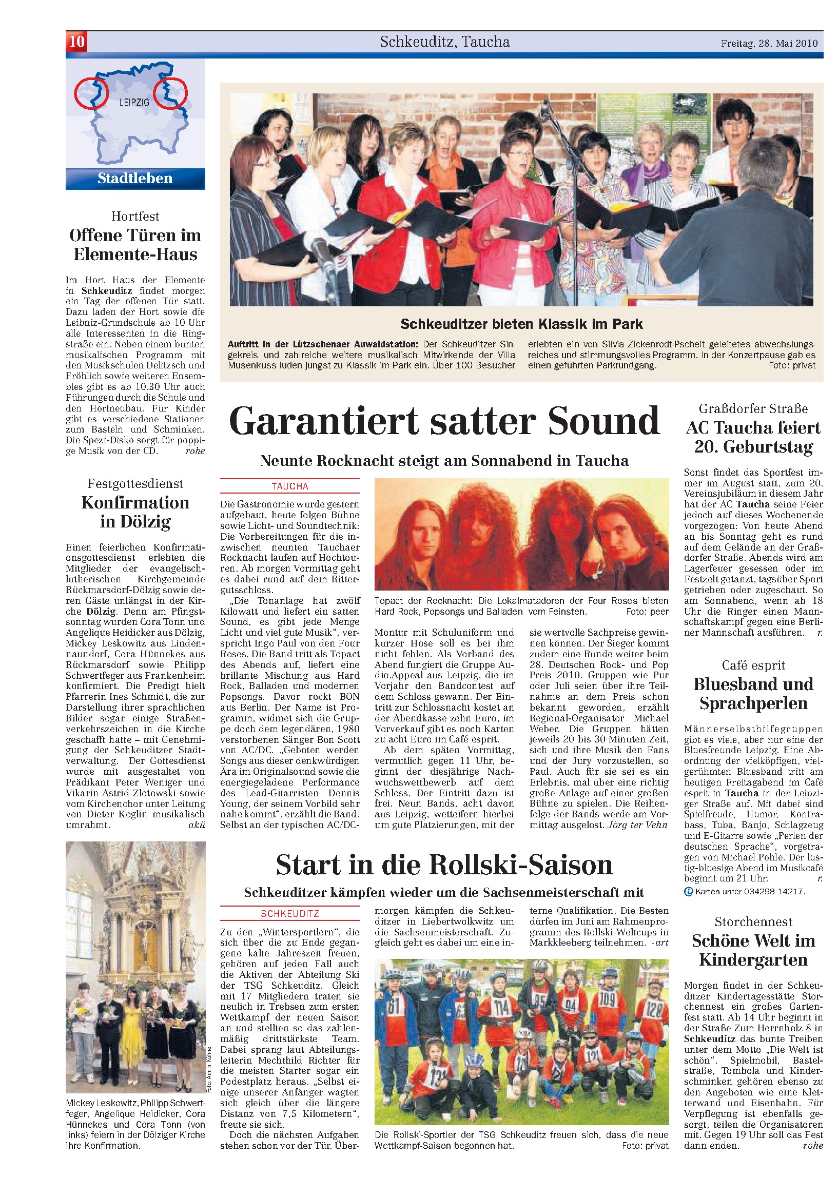 LVZ vom 28.05.2010 – Konzert der Instrumentalisten und des Schkeuditzer Singekreises der Villa Musenkuss im Rahmen der Veranstaltungsreihe „Klassik im Park“ in der Auwaldstation/Lützschena