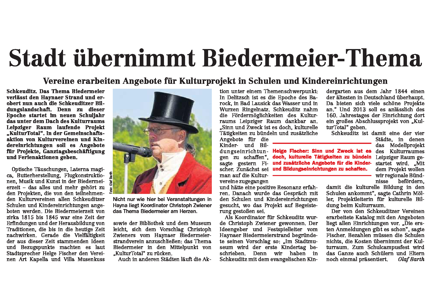 LVZ vom 21.06.2012 – Vereine erarbeten Angebot für Kulturprojekt / Biedermeier