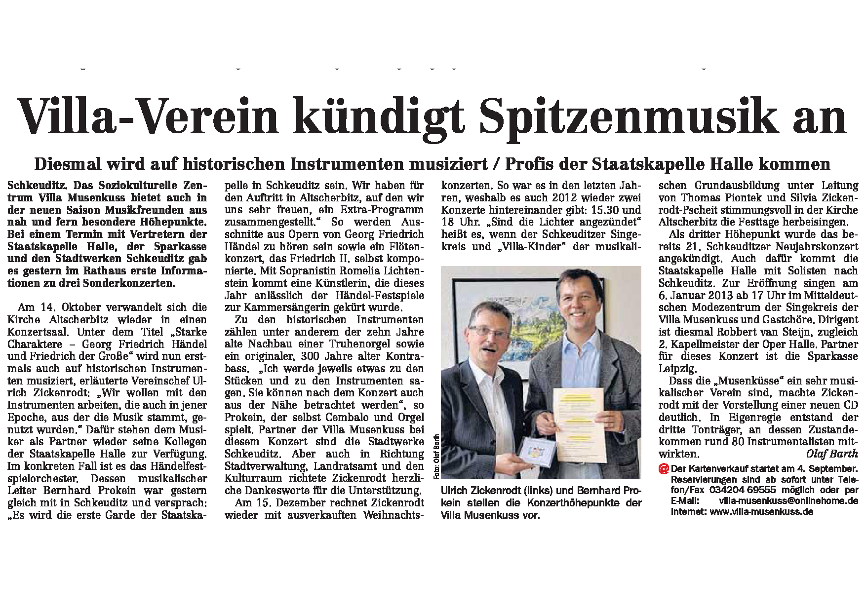 LVZ vom 27.06.2012 – Villa-Verein kündigt Spitzenmusik an