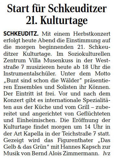 LVZ vom 29.09.2017 – Seite 25 – Start für 21. Schkeuditzer Kulturtage