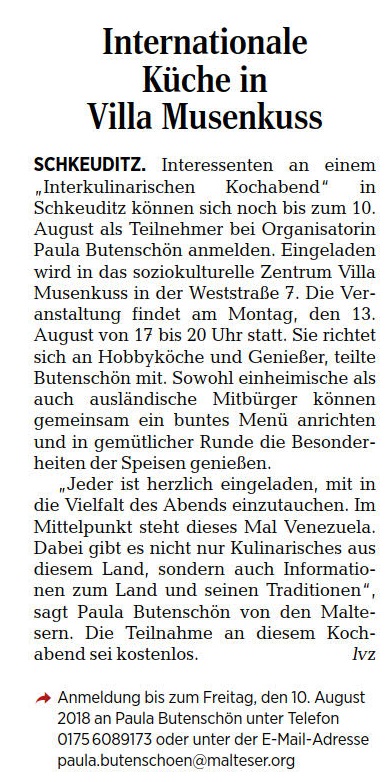 LVZ vom 26.07.2018 – Seite 19 – Internationale Küche in der Villa Musenkuss