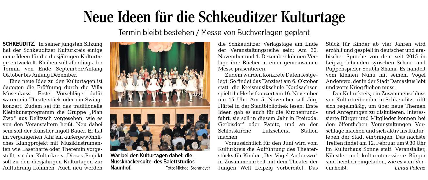 LVZ vom 24.01.2019 – Seite 19 – Neue Ideen für die Schkeuditzer Kulturtage