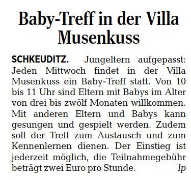 LVZ vom 13.07.2019 – Seite 22 – Baby-Treff in der Villa Musenkuss