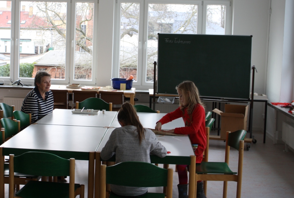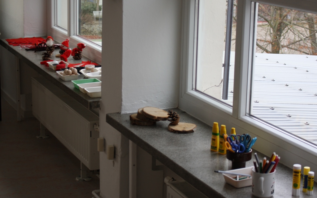 Kinder basteln nach Anleitung Advents- und Weihnachts-Deko.