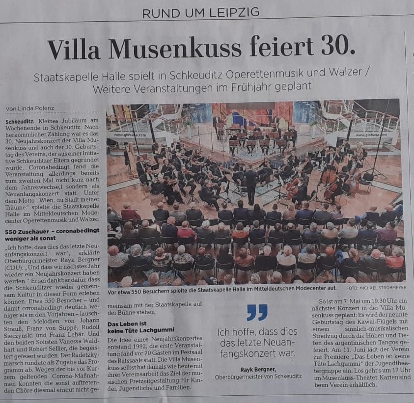LVZ vom 13.4.2022- Seite 21 – Villa Musenkuss feiert 30.