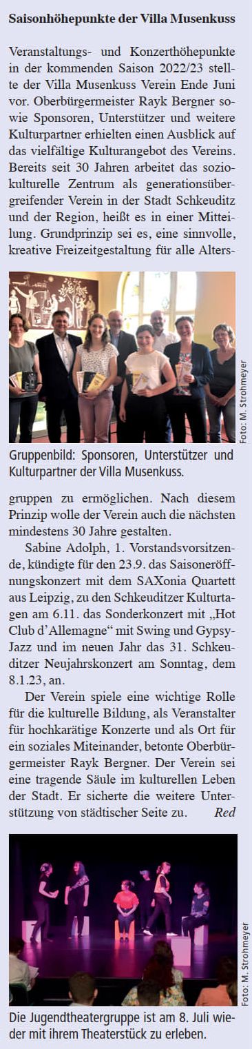 Schkeuditzer Bote 07/2022 – Seite 6 – Saisonhöhepunkte der Villa Musenkuss
