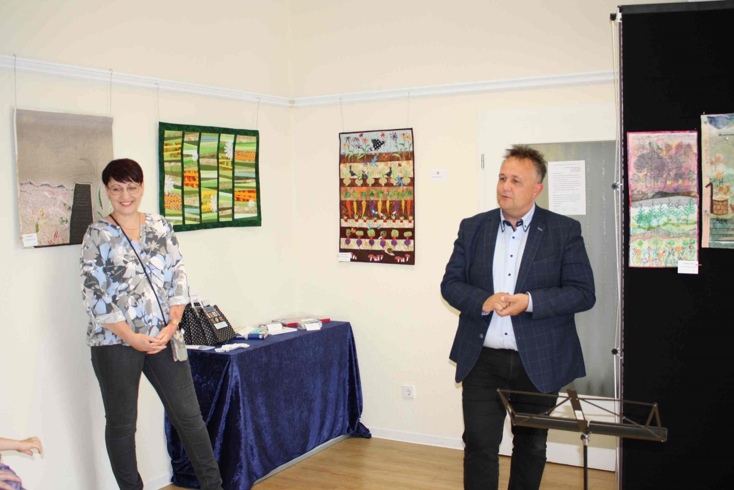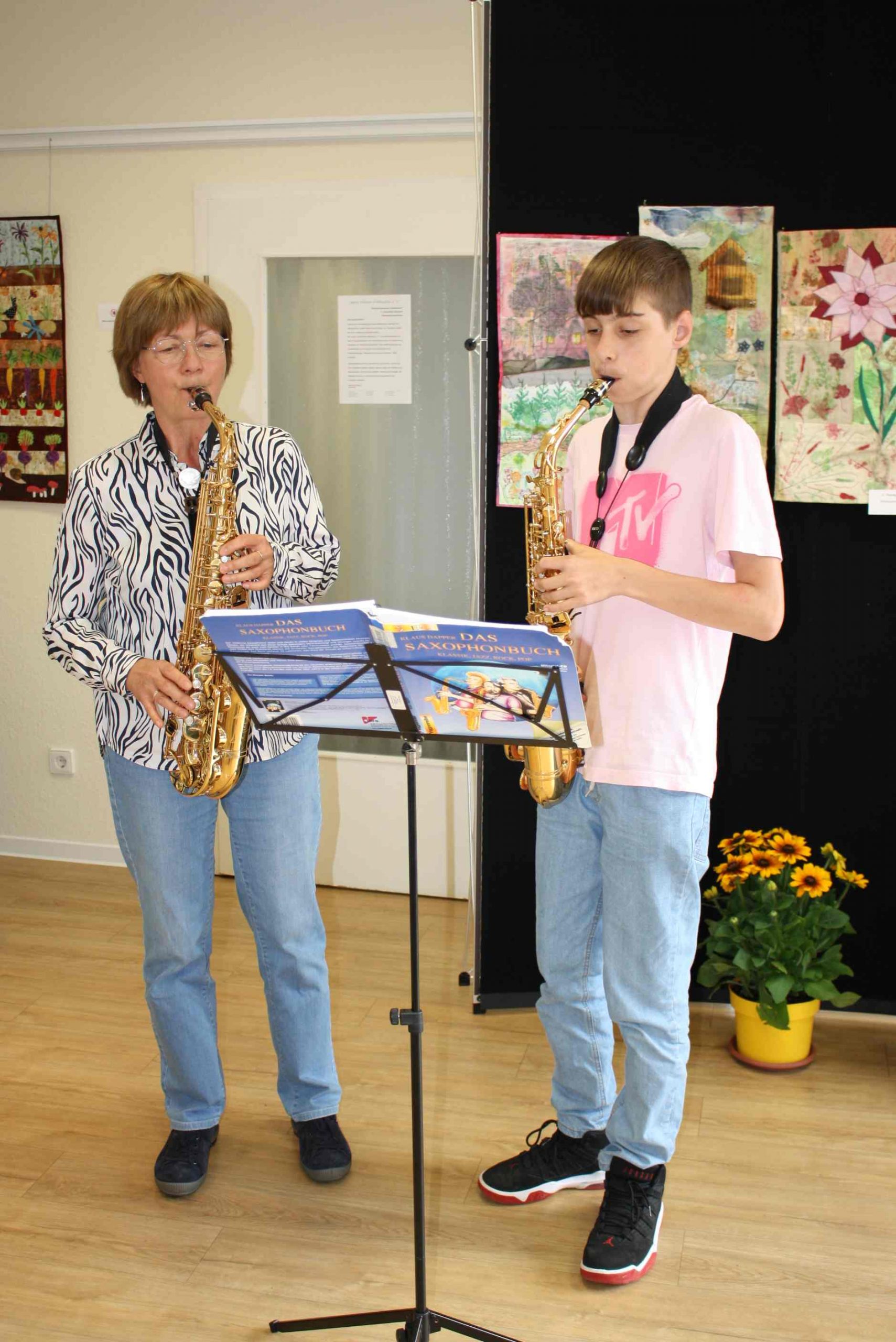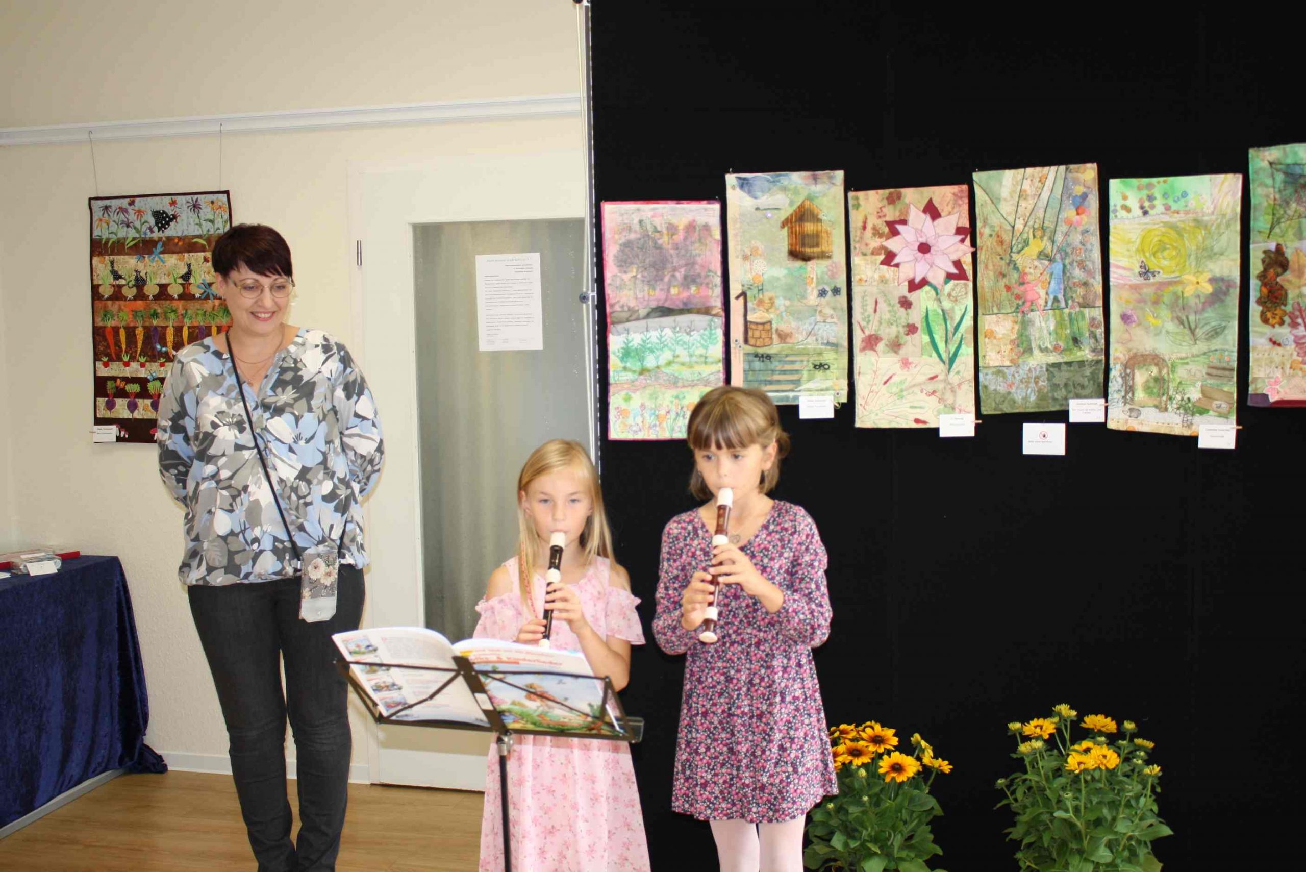 Instrumentalschüler vom Villa Musenkuss e.V. boten eine musikalische Rahmung für die Ausstellungseröffnung am 8. Juli 2022 der 17. Schkeuditzer Quiltnacht in der Rathaus Kollonade im Beisein des OBM, Herr Bergner.
